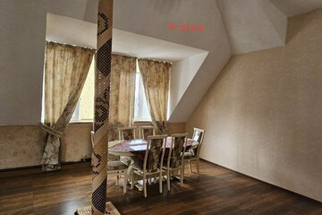 Каждый этаж представляет собой однокомнатную квартиру с ванной комнатой, кухней и спальней. На первом этаже два входа, первый этаж находится в стадии ремонта