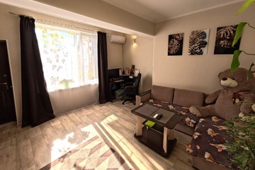 Дом старой постройки, с отдельным входом и собственным двориком. Квартира просторная и светлая, окна выходят на южную сторону. Горячая вода от электрического бойлера, отопление — теплые полы. В квартире есть кондиционер, что обеспечивает комфорт в любое время года. Коммунальные платежи не превышают 5 тысяч рублей в месяц.