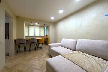 Квартира с продуманной планировкой и дизайнерским ремонтом.Просторная гостиная-столовая с кухней и лоджией, два полноценных санузла, большая кладовая, спальня с гардеробом, еще одна гостиная с лоджией.