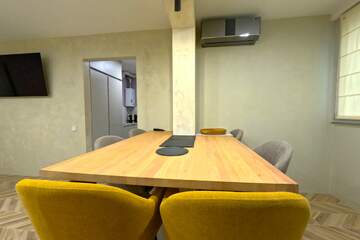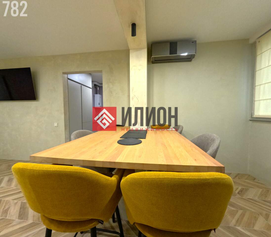 Полностью оснащена мебелью и техникой: встроенный холодильник, посудомоечная машина, три кондиционера, газовая колонка и электрический бойлер.