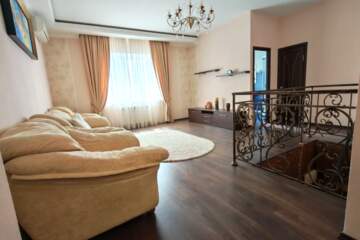 Квартира очень уютная, просторная и светлая, в отличном состоянии. Расположена на 5 этаже 5-ти этажного дома. Из окон открывается вид на море. На первом этаже отопление центральное, второй этаж отапливается двухконтурным котлом, горячая вода обеспечивается котлом. Вся мебель выполнена по индивидуальному дизайну из цельной древесины, остается новому собственнику. Вся бытовая техника также остается в квартире. Квартира оборудована системой охранной сигнализации.