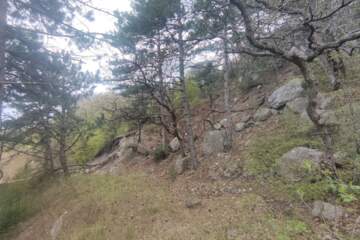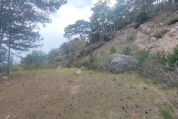 Участок расположен на границе с заповедной зоной. Имеет удобный подъезд. С участка открывается вид на море и гору. Расположен в лесу. Окружён хвойными деревьями. Идеально подходит для гостевого дома и рекреационных поселений. Имеет подъезд с трассы.