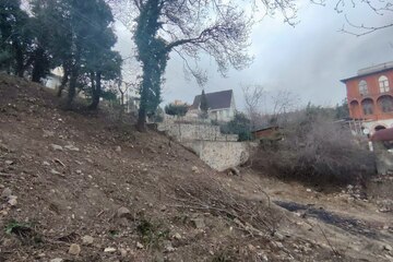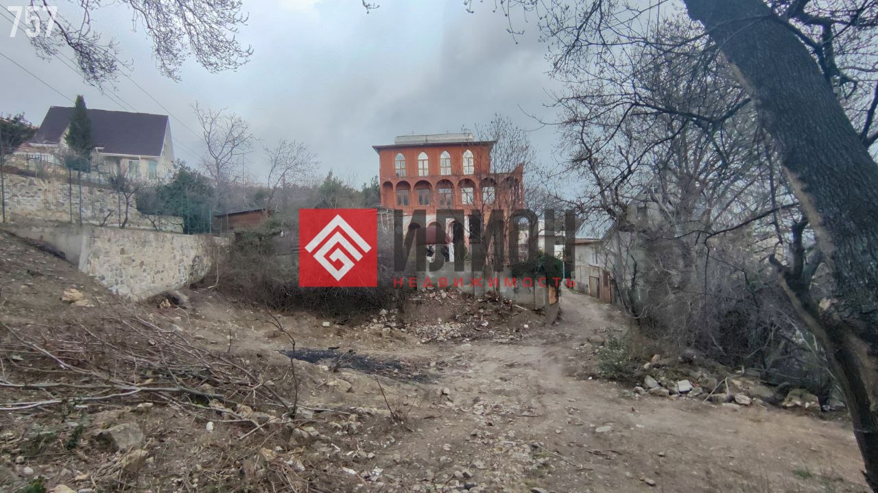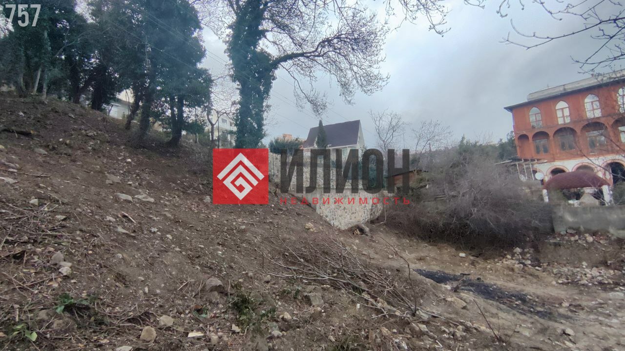 Площадь участка 9.56 соток, имеет уклон. Расположен в развитом и тихом районе. Есть подъездная дорога. С участка открывается вид на море.